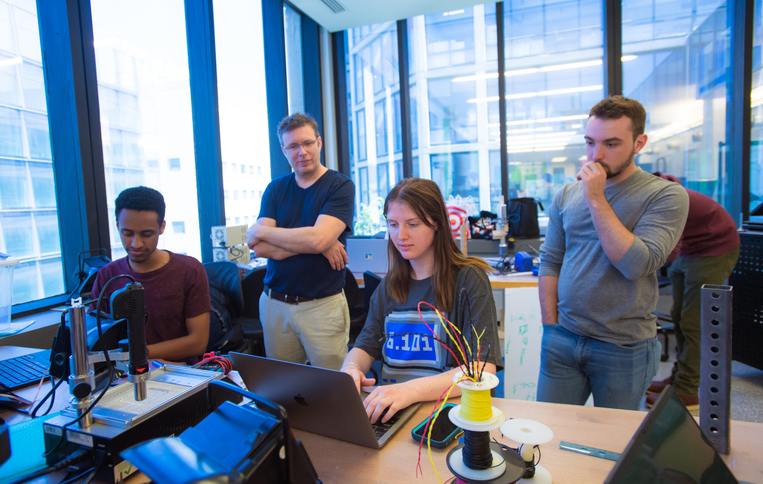 The new curriculum’s emphasis on hands-on learning is deliberate, and ubiquitous throughout 6-5. Within the Circuits track, students who enroll in 6.208, Semiconductor Electronic Circuits, will get an opportunity not only to design a circuit, but to actually see their design made, in a process called “tape-out”. Professor Ruonan Han, who helped design the course, explains: “A tapeout is a perfect training that poses [real-life] constraints and forces the students to solve practical engineering problems. Through circuit simulation using mainstream industry CAD tools, the students better understand how deep-scaled transistors differ from the ideal behaviors taught in textbooks. By drawing the layouts of the silicon and metal patterns, the students learn how a modern chip is made, layer by layer. The complex (and often frustrating) rules of the layout also keep reminding the students of all the technical limitations during the chip manufacturing, and make them better appreciate all the accomplishments in semiconductor manufacturing. Even the firm and non-negotiable tapeout submission deadline forces the students to not only wisely manage their development timeline, but also to experience heart-beating moments when decisions on critical engineering tradeoffs should be made (in order to deliver). To these students, it was such relentless efforts that gave them lots of satisfaction and pride when they finally hold their own chips in hand.”